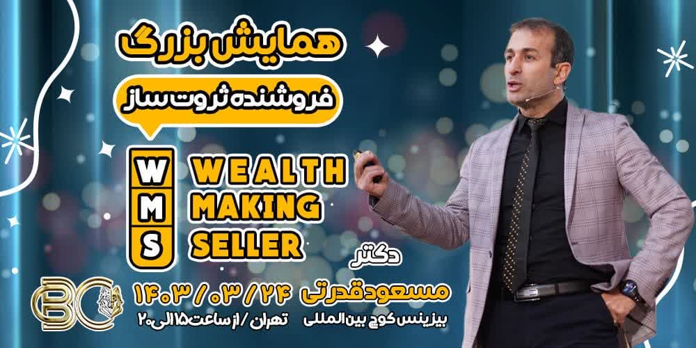 شما هم شانس حضورتان را برای همایش متفاوت WMS امتحان کنید!!! Wealth Making Seller رویداد خاص ۲۴ خرداد ماه ۱۴۰۳ فروشنده ثروت ساز هتل ۵ ستاره سیمرغ تهران زمان : ۲۴ خرداد ماه ۱۴۰۳ ساعت ۱۵ الی ۲۰